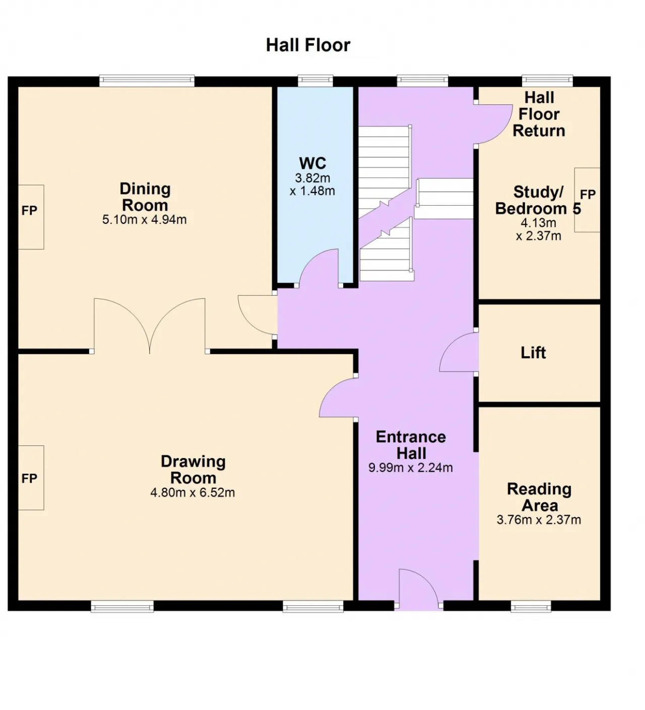 Hall Return Sash window overlooking rear garden. Stairs to garden level.