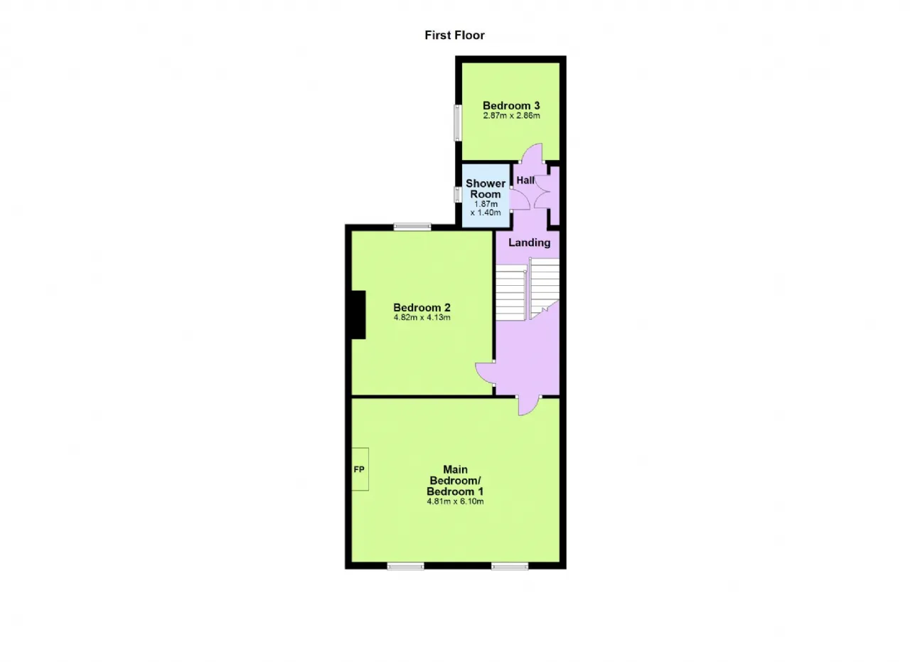 Bedroom 3 2.87m x 2.86m Single bedroom, fireplace with cast iron mantlepiece (covered by radiator), built in wardrobe, window, attic hatch.