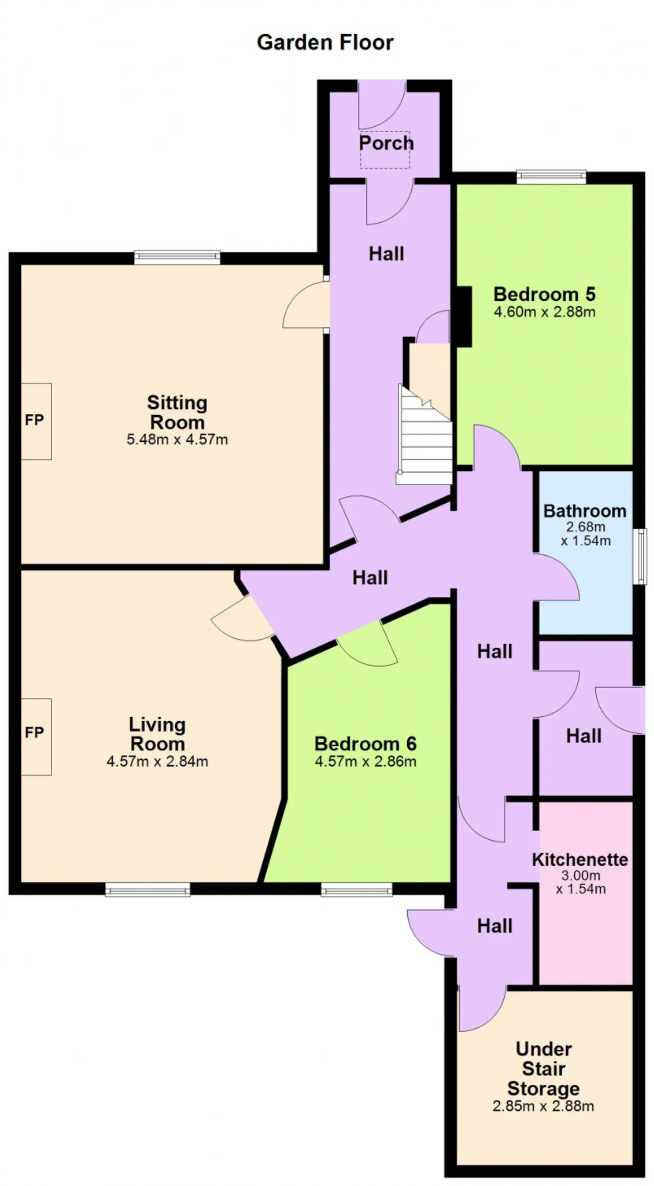Sitting room/Bedroom 7 Currently in use as an office. Open fire with brick surround, sash window overlooking rear garden.