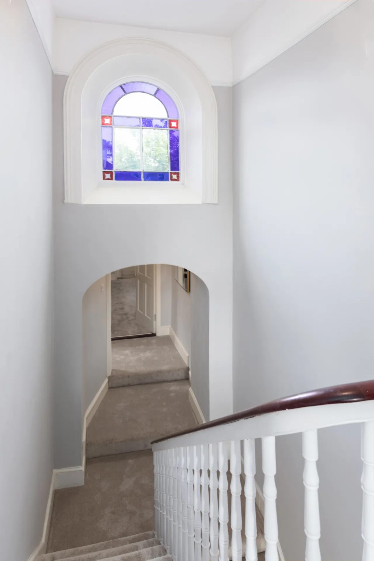 Landing: with beautiful stained glass window, picture rail and attic access.