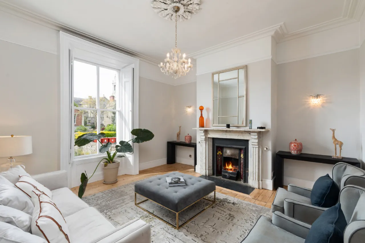 Internally, this light filled family home offers generous accommodation extending to 164sqm / 1,765sqft approx. and comprises briefly of a wonderfully bright entrance hallway, off which are two magnificently proportioned reception rooms, both boasting marble fireplaces, ceiling cornices and sash windows. The front reception room has a magnificent sash window with a beautiful view onto Leinster Road.