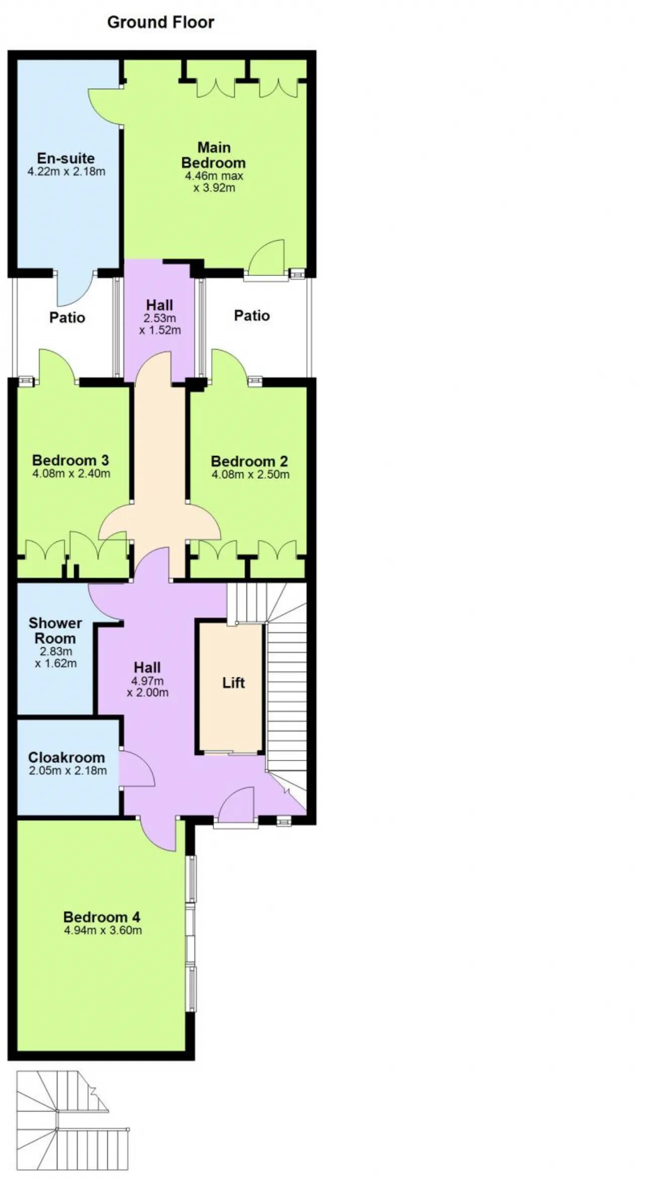 Bedroom 3 Double room on left, walnut flooring, wall to wall fitted wardrobes, door to courtyard.