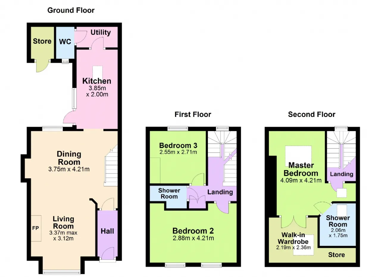 Behind the front door, lies a light-filled and contemporary interior that now offers an ultra-chic, bright home designed with great style and flair. This exceptional property offers the discerning purchaser a superb opportunity to own a fantastic family home in this highly sought after residential area. The accommodation comprises an open plan living / dining room, light filled kitchen, utility room and w.c. On the first floor there are two double bedrooms and a family shower room and the main bedroom, walk in wardrobe and en-suite can be found on the second floor. The paved patio area offers light into both the kitchen and dining room and further storage options with the store room. There is also off street parking to the front with an ‘Epower’ EV charger.