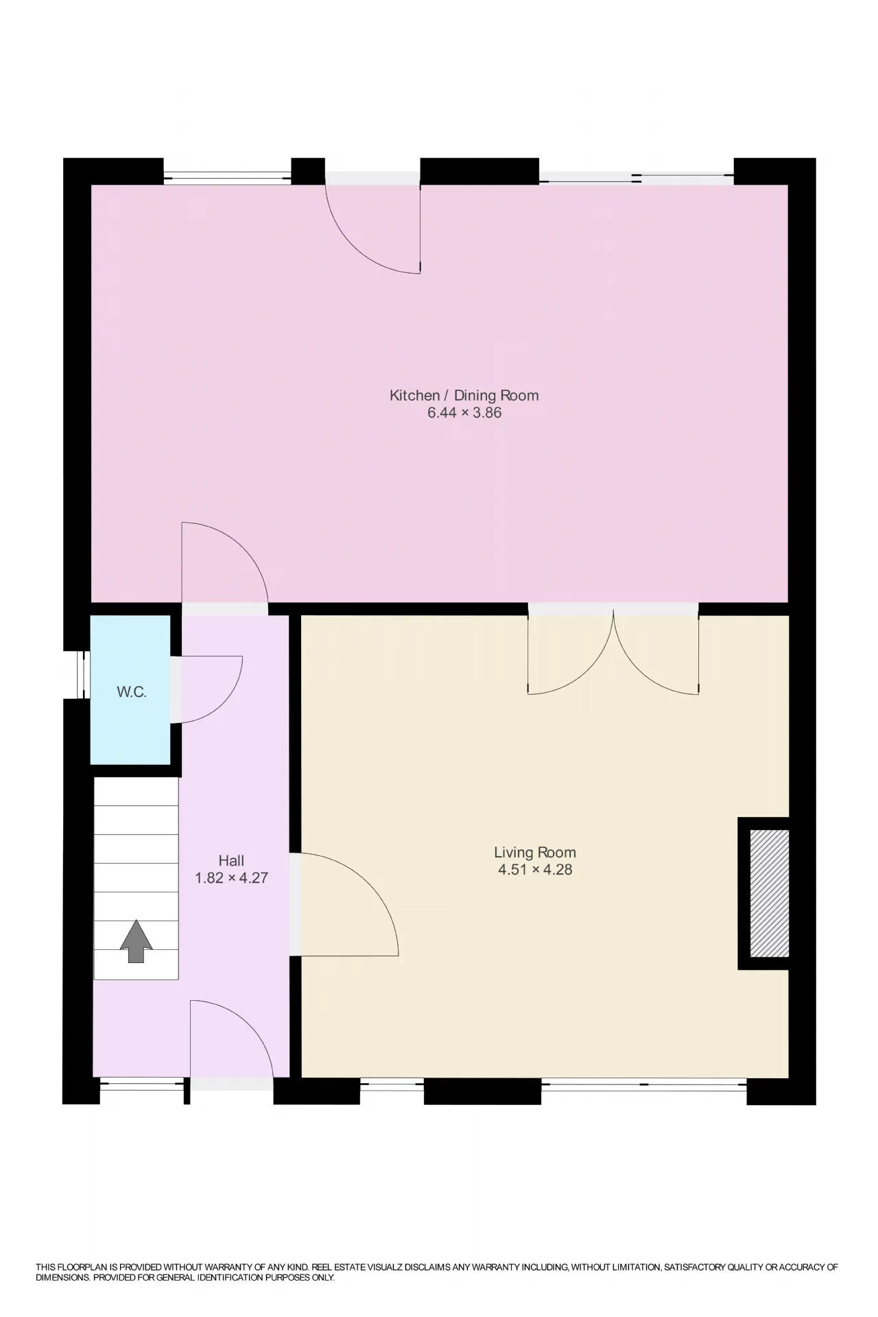 Living Room 4.51m x 4.28m Spacious front facing living room with feature fireplace and double doors leading to kitchen/dining room. Laminate floor.