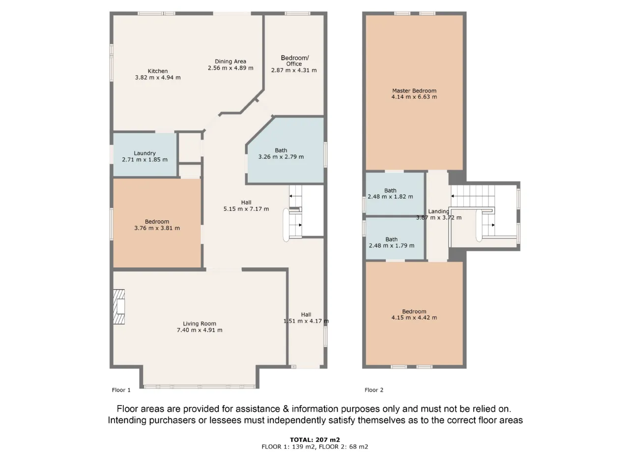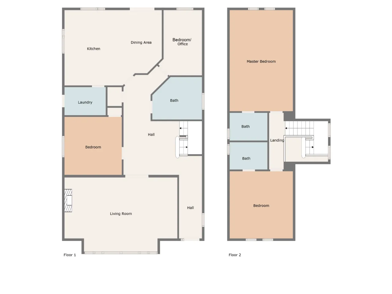 The accommodation briefly comprises entrance hall, large living room, bedroom 1, family bathroom, bedroom 2, spacious kitchen/dining area with utility room. Upstairs there are two very spacious bedrooms both having the benefit of ensuite bathrooms.