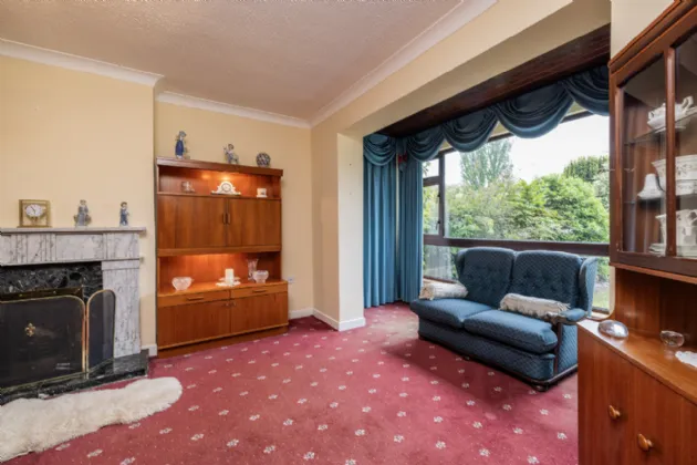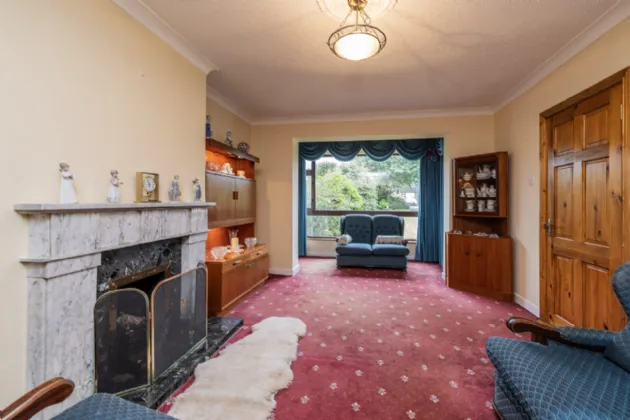 Living Room 3.60m x 6.43m Bright and spacious living room with carpet flooring, coving to ceiling, feature fireplace with open fire, double doors to dining area.