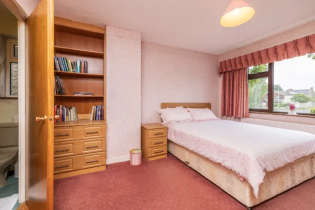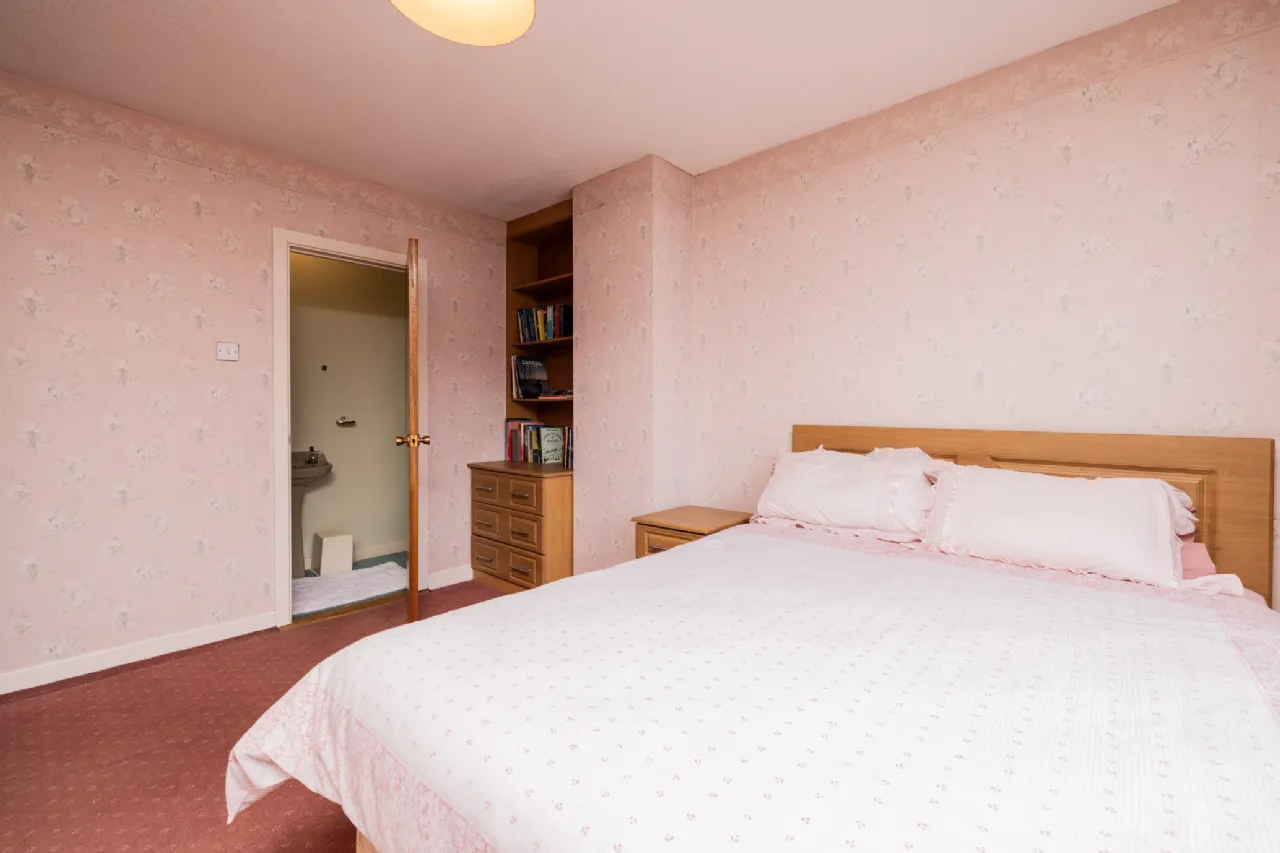 Bedroom 1 4.02m x 3.83m Spacious primary bedroom with carpeted flooring, built in drawer & shelf unit, built in wardrobes and door to en-suite
