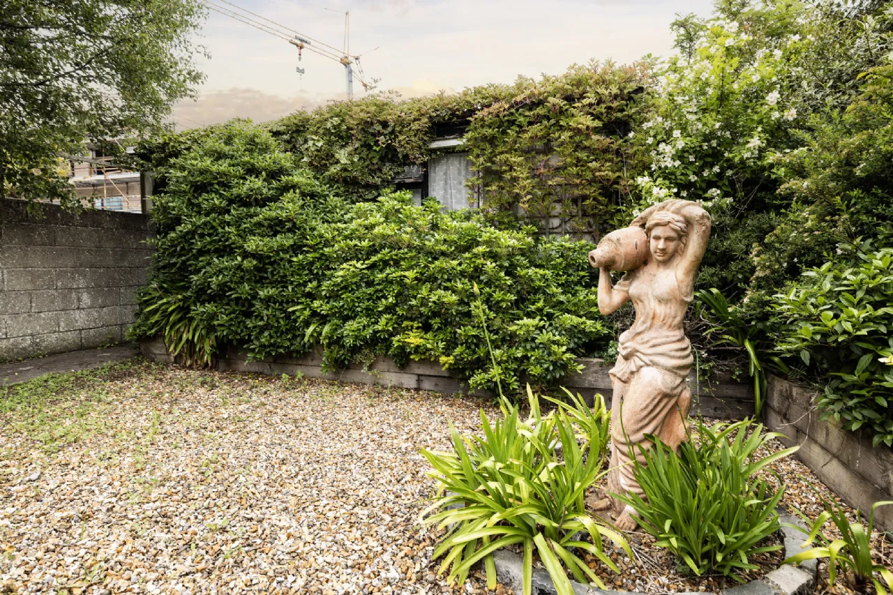 Outside A generously sized private driveway provides ample parking for multiple vehicles, complemented by a beautifully maintained front garden featuring an abundance of mature planting. A gated side entrance provides access to the rear garden. The rear garden is fully enclosed by a boundary wall and designed for low maintenance, featuring a spacious paved patio, mature border planting, and a solid block-built garden shed — ideal for storage or hobbies.