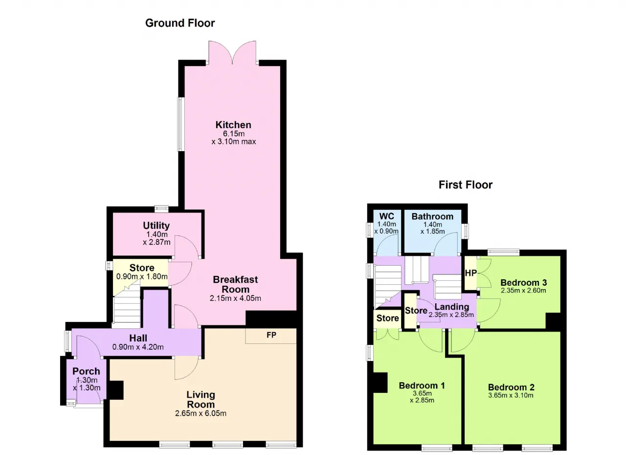Store Room: 0.90m x 1.80m with boiler and fitted shelving