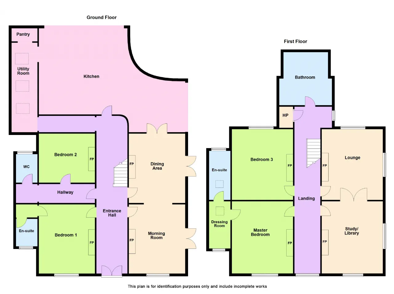 The accommodation is generously arranged over two levels and briefly comprises at hall level of Entrance hall, study/library, lounge, principal bedroom with dressing room and ensuite, bedroom 2 and main bathroom. On garden level the accommodation comprises, spacious second entrance hall, morning room, dining room opening into a partially completed kitchen space, two further bedrooms, one ensuite, a guest w.c. and pantry/utility room.