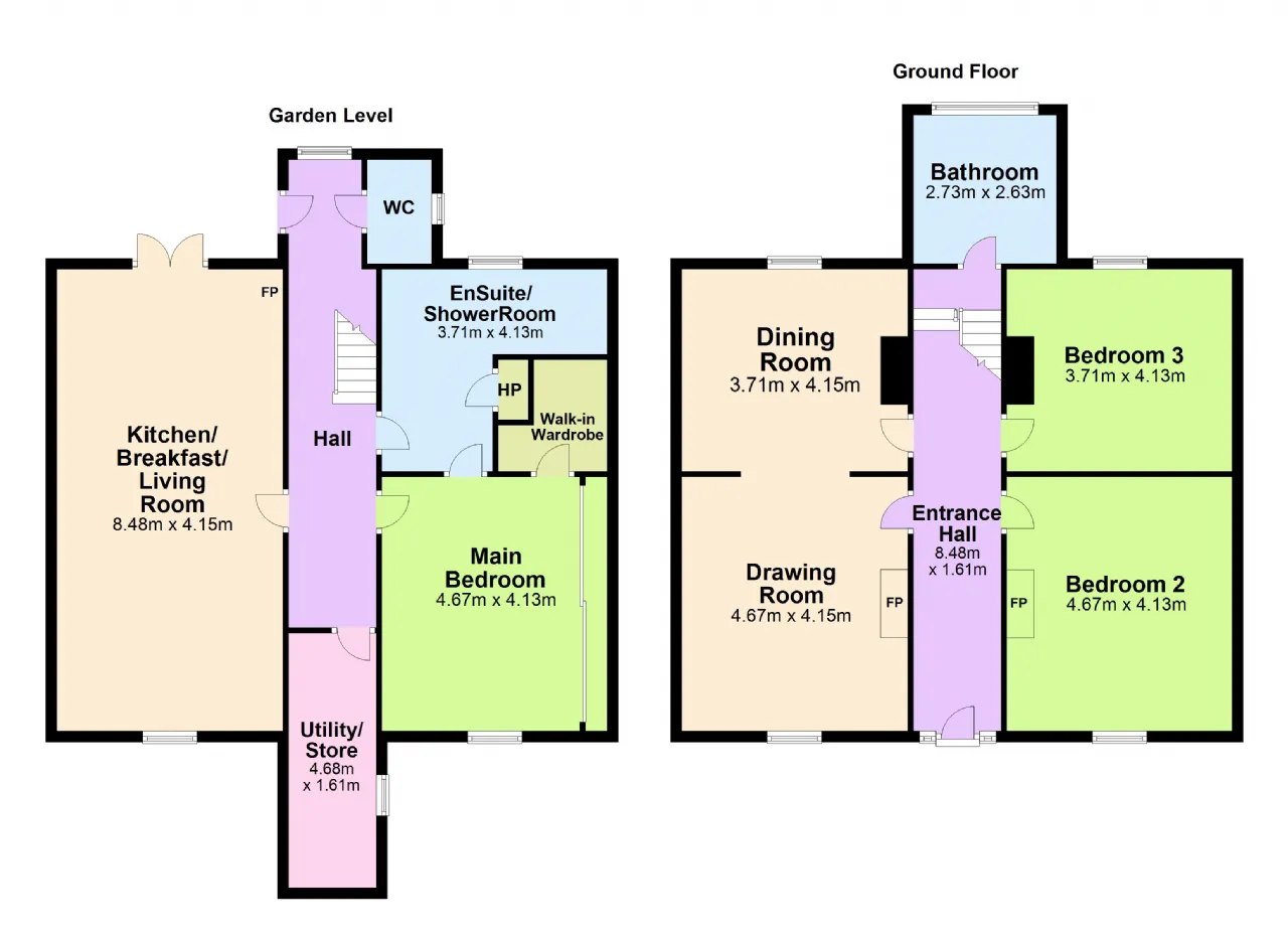 Bedroom 2 4.67m x 4.13m Currently in use as a sitting room, overlooking the front garden, window with working shutters and plantation shutters, ceiling coving, picture rail, feature marble fireplace with cast iron and tiled inset.