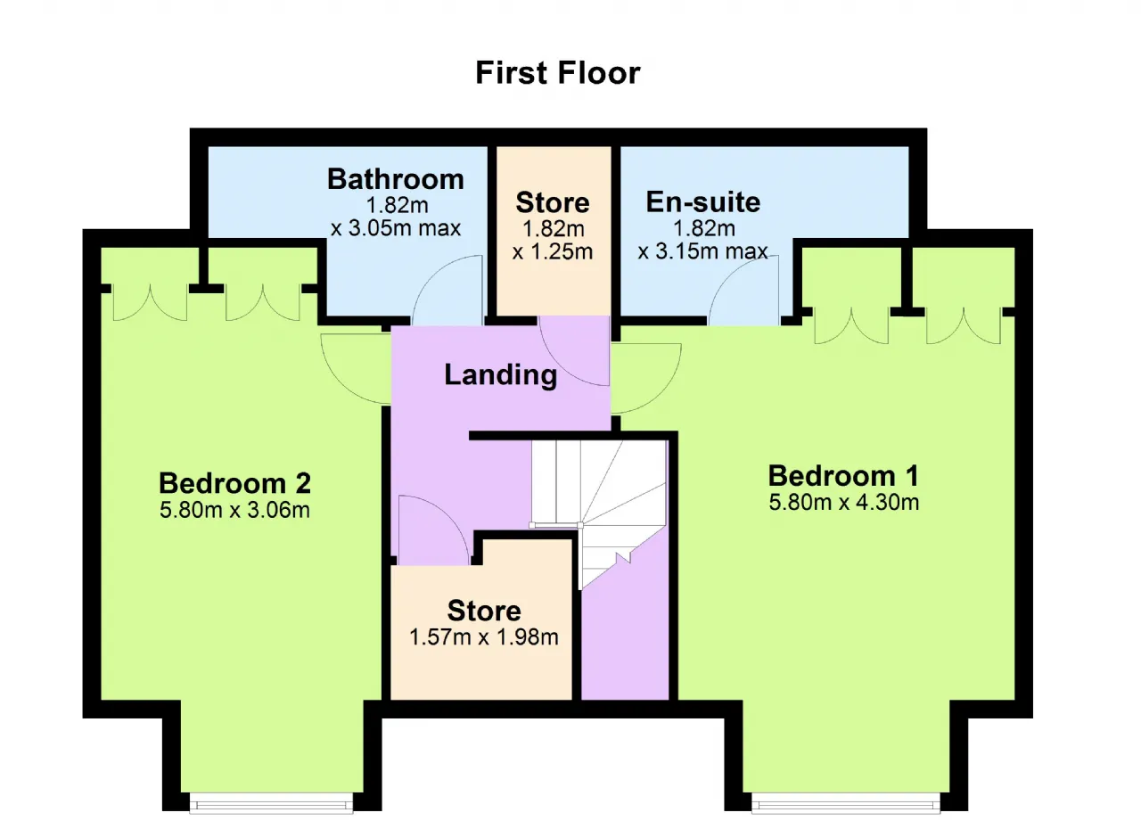 Bedroom 2 5.80m x 3.06m Double bedroom with carpet flooring and built in wardrobes.