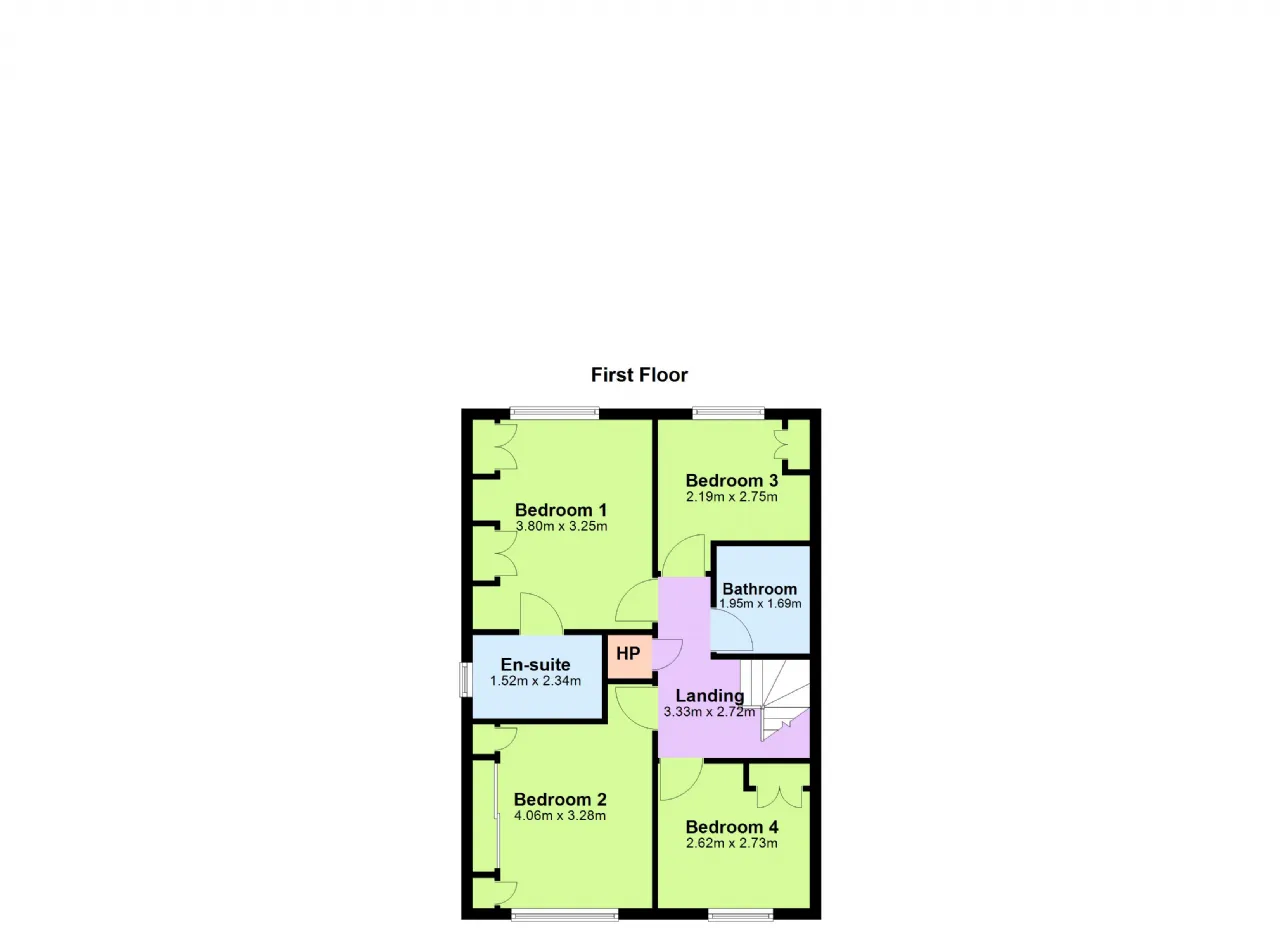 Bedroom 1 3.80m x 3.25m Main double bedroom with built-in wardrobes and fitted desk/dressing table area. En suite shower room.