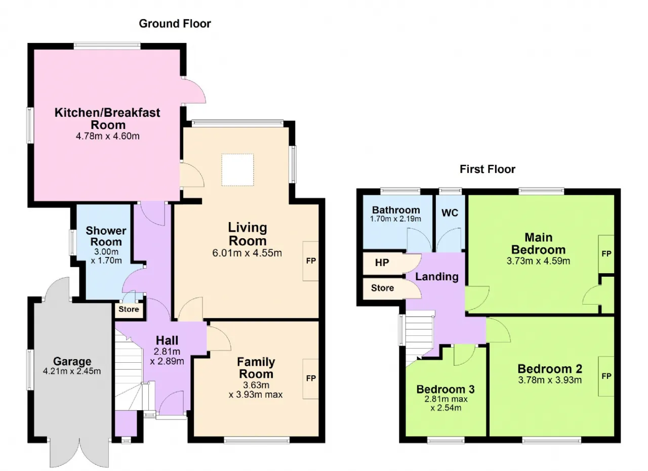 Main Bedroom 3.73m x 4.59m Large double bedroom with carpet floor, feature fireplace and built in wardrobe overlooking the rear garden.
