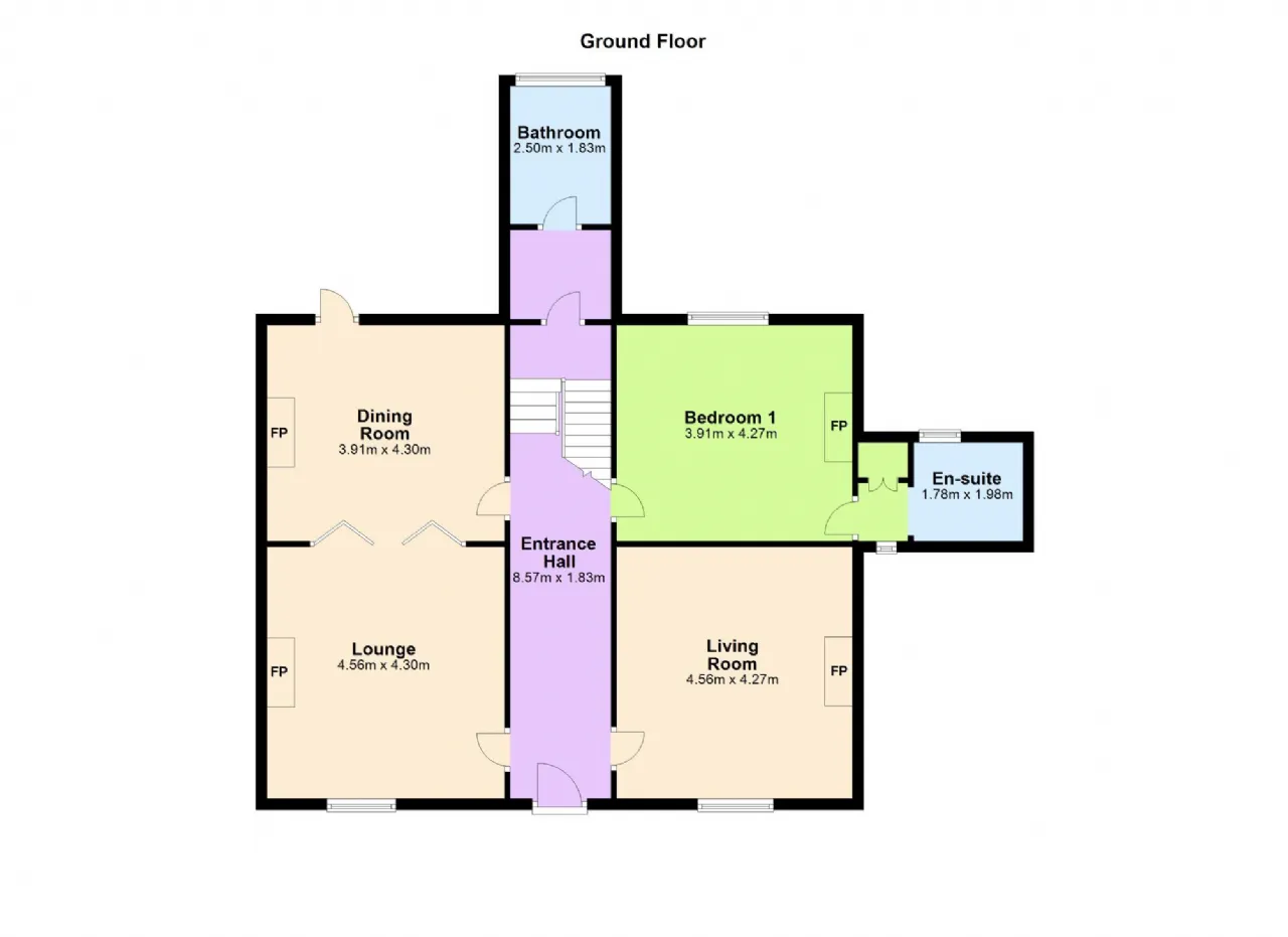 Drawing Room 4.56m x 4.30m With wood floor, feature fireplace with cast iron surround, high ceilings, coving windows with shutters and double doors to
