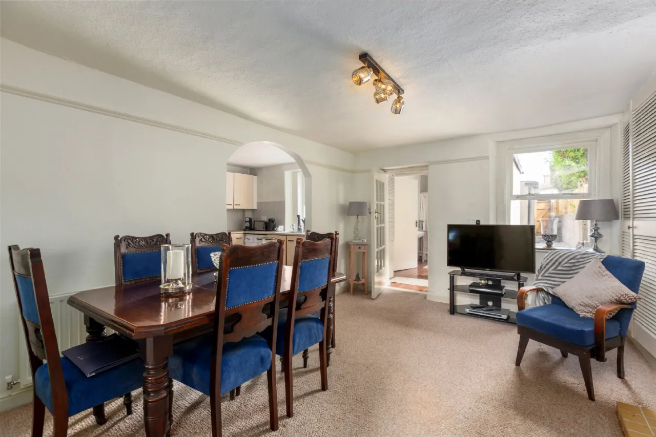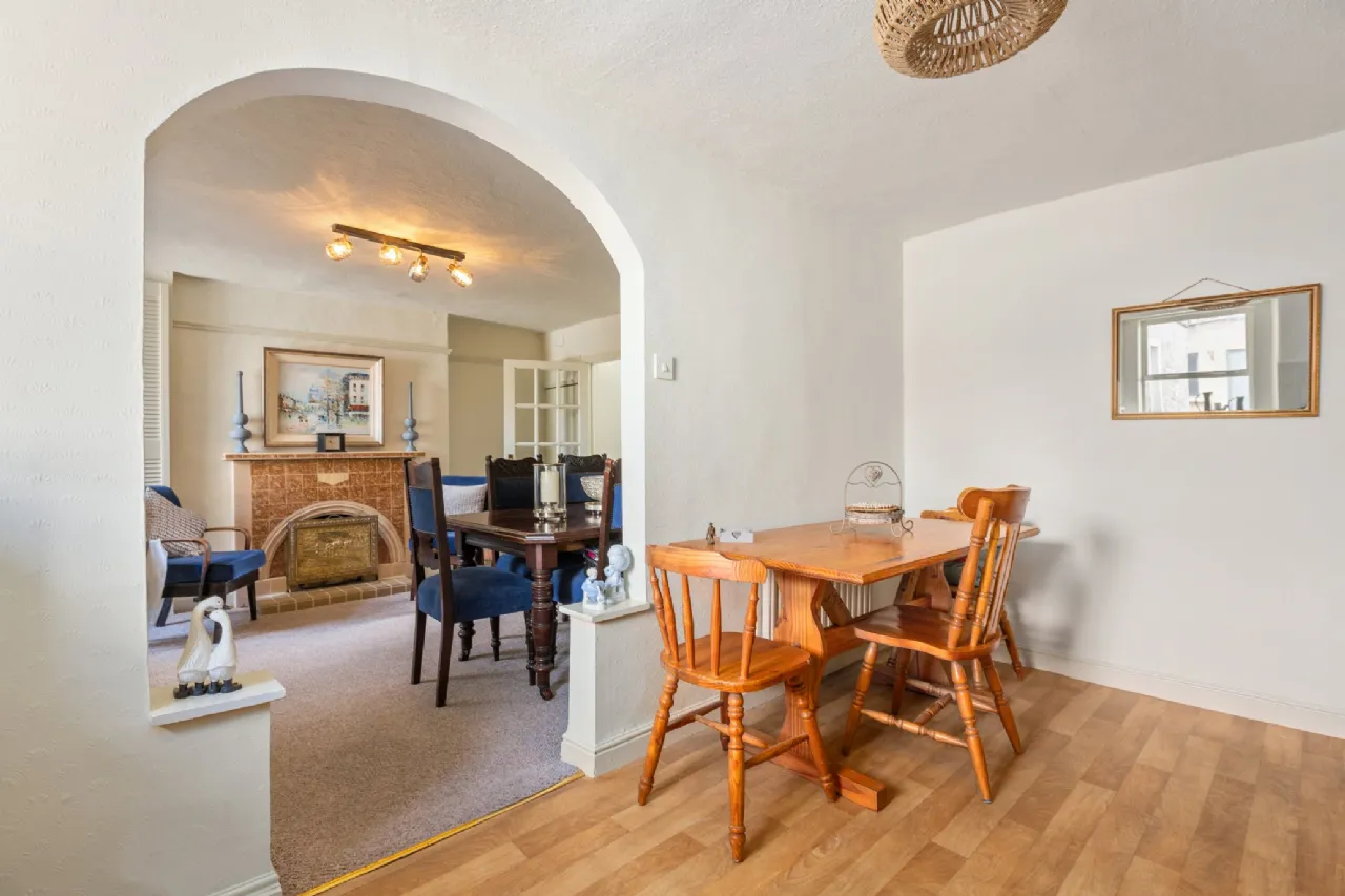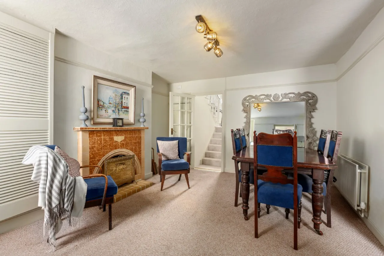 Dining/Living Room 4.37m x 3.76m With open fireplace and built in shelving.
