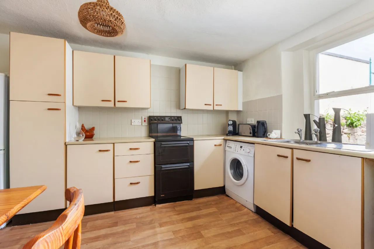 Kitchen 4.37m x 2.55m With breakfast area, ample wall and floor units, sink, oven/hob and plumbed for washing machine.