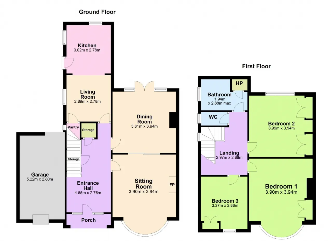 Sitting Room 3.90m x 3.94m With wood floor, coving, fireplace, bay window and door to