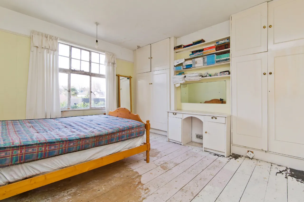 Main bedroom 3.90m x 3.94m Double bedroom to the front with built in wardrobe and bay window.