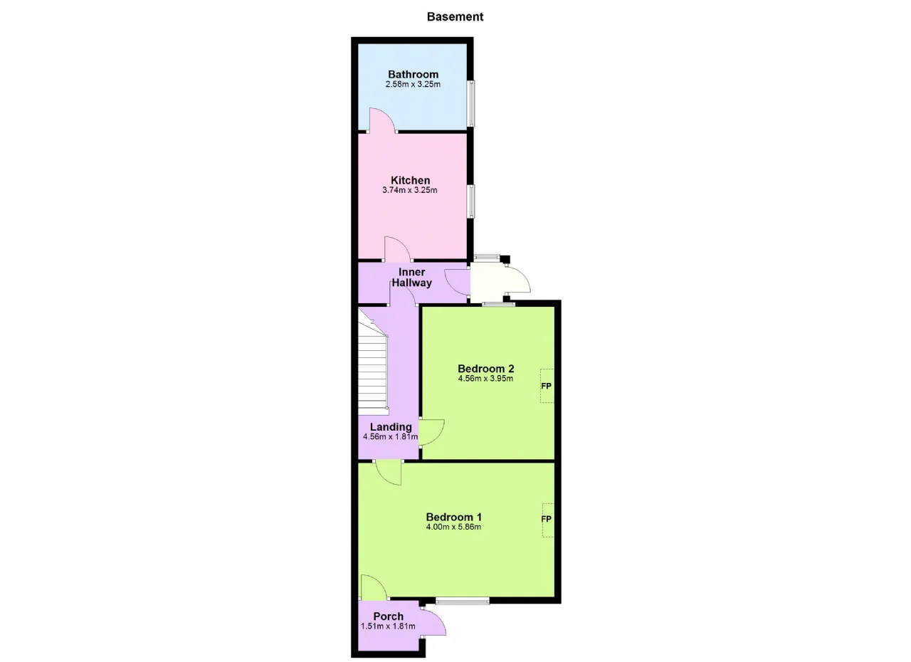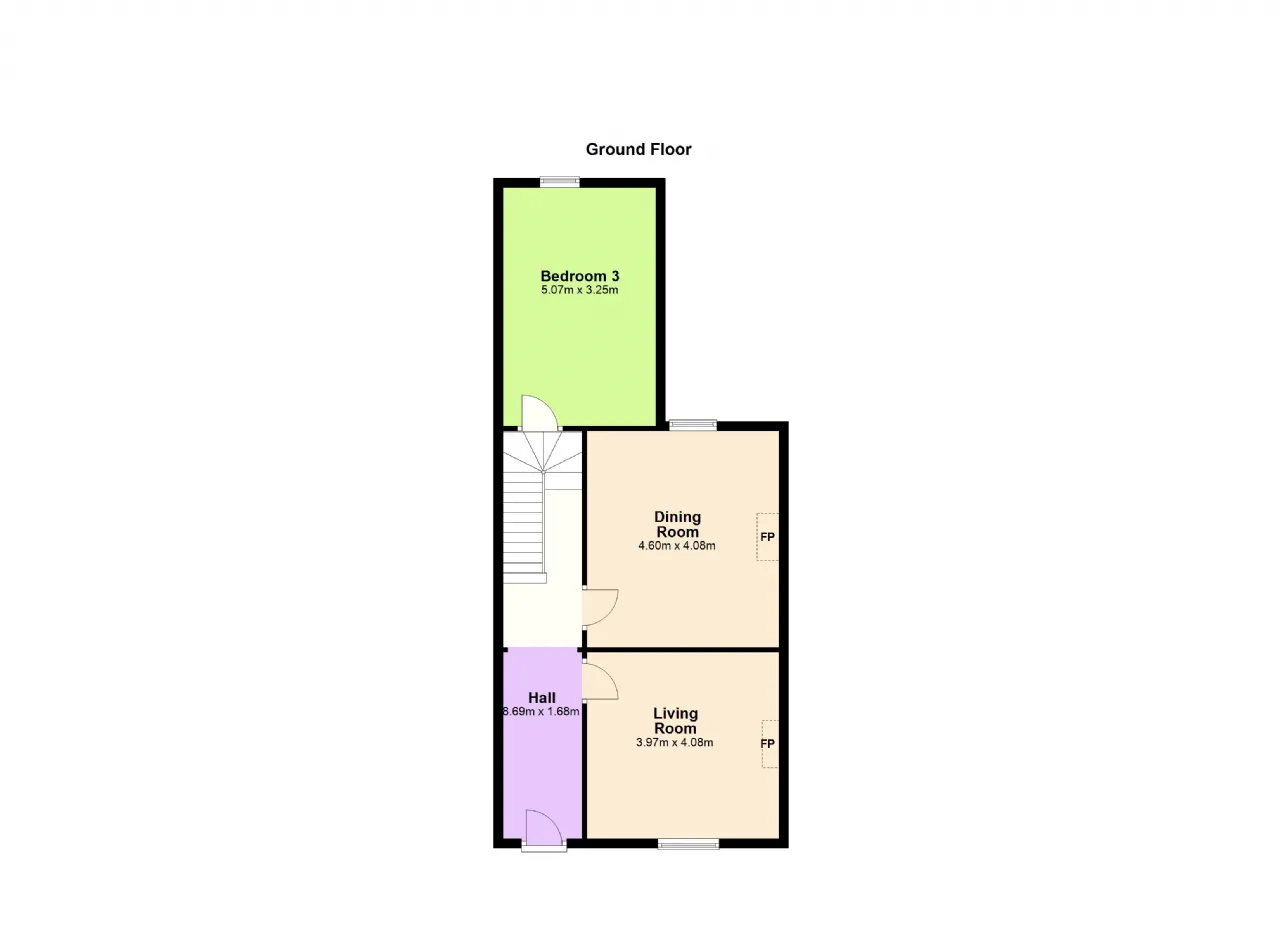 Bedroom 2: with carpet floor, open fireplace and window overlooking rear garden.