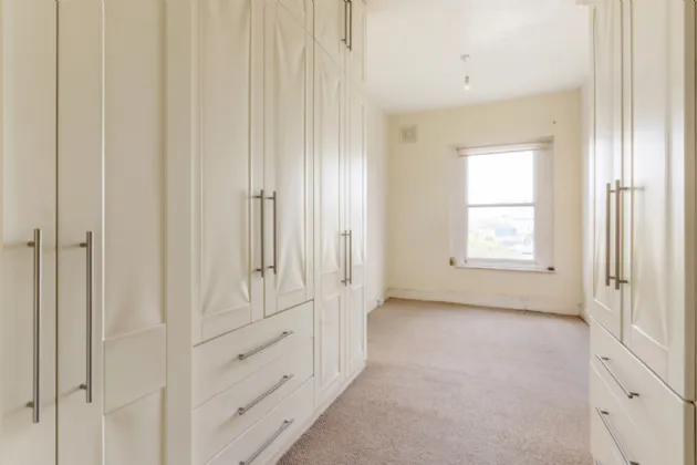 Bedroom double bedroom with fitted wardrobes, hot press, access to the attic and a sash window overlooking the front.