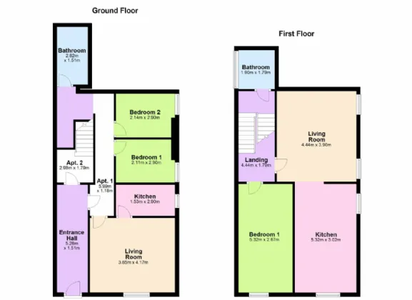 The property is presented over two floors and is currently separated into two apartments with accommodation briefly comprising of an entrance hall, living room, kitchen, two bedrooms and bathroom on the ground floor, a bathroom on the first floor return and a living room, kitchen and bedroom on the first floor. The house also boasts off street parking to the front.