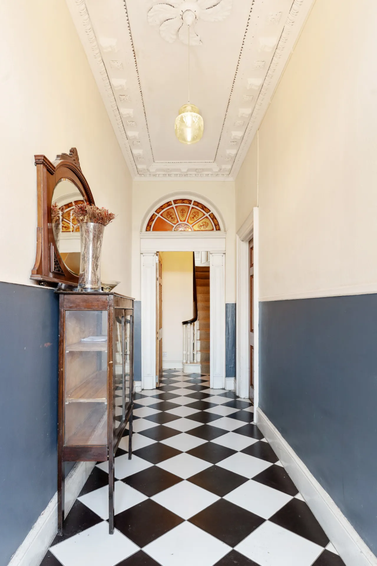 Entrance Hall with high ceilings, tiled floor, coving and door to ground floor apartment.
