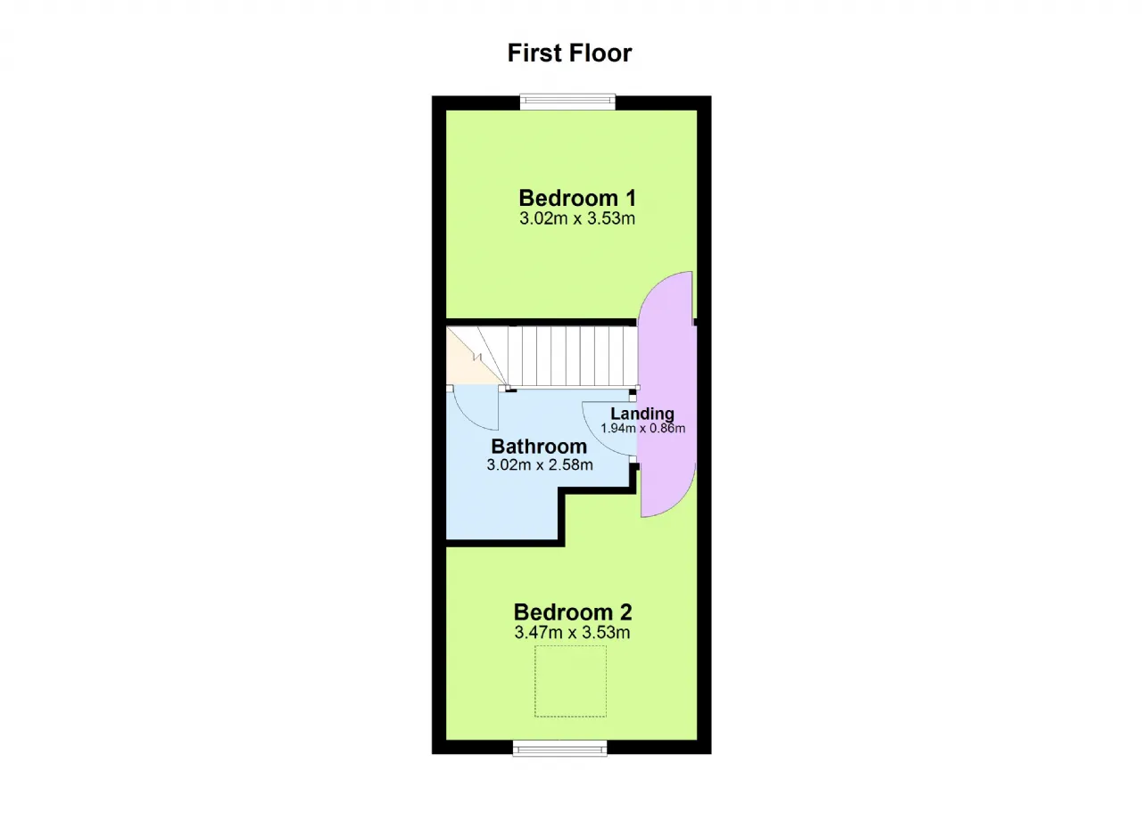 The accommodation measures approx. 64 sq m/ 689 sq ft and briefly comprises of an entrance porch leading to a spacious living room with door to an open plan kitchen/ dining room with a sliding glass door leading into the easy to maintain rear garden. Upstairs there are two double bedroom and a recently refurbished bathroom completes the accommodation.