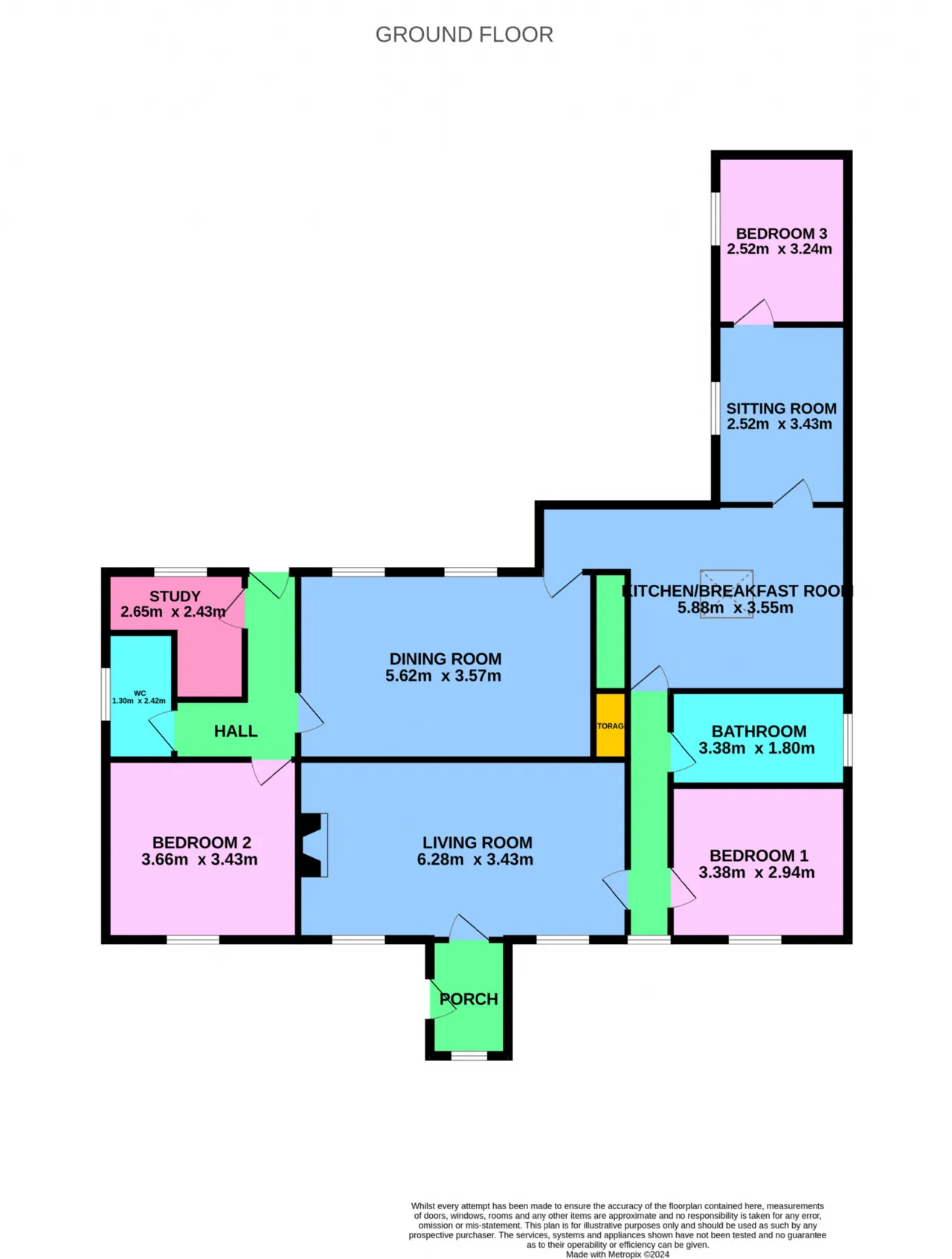 The accommodation briefly comprises of a fine front entrance porch with Victorian style floor tiles, opening into the large living room with an open fireplace and views to the front garden. On the right, the hallway offers access to several rooms including the main double bedroom to the front of the house, a modern bathroom and a warm and very bright kitchen / breakfast room. There is a semi glazed stable door from the kitchen to the exterior rear patio and garden. Off the kitchen, there is a cosy sitting room which leads directly into bedroom 3. The spacious dining room, with its feature fireplace and views of the rear garden, adjoins the kitchen. A carpeted inner hallway off the dining room leads to bedroom 2, the utility / WC and the study.