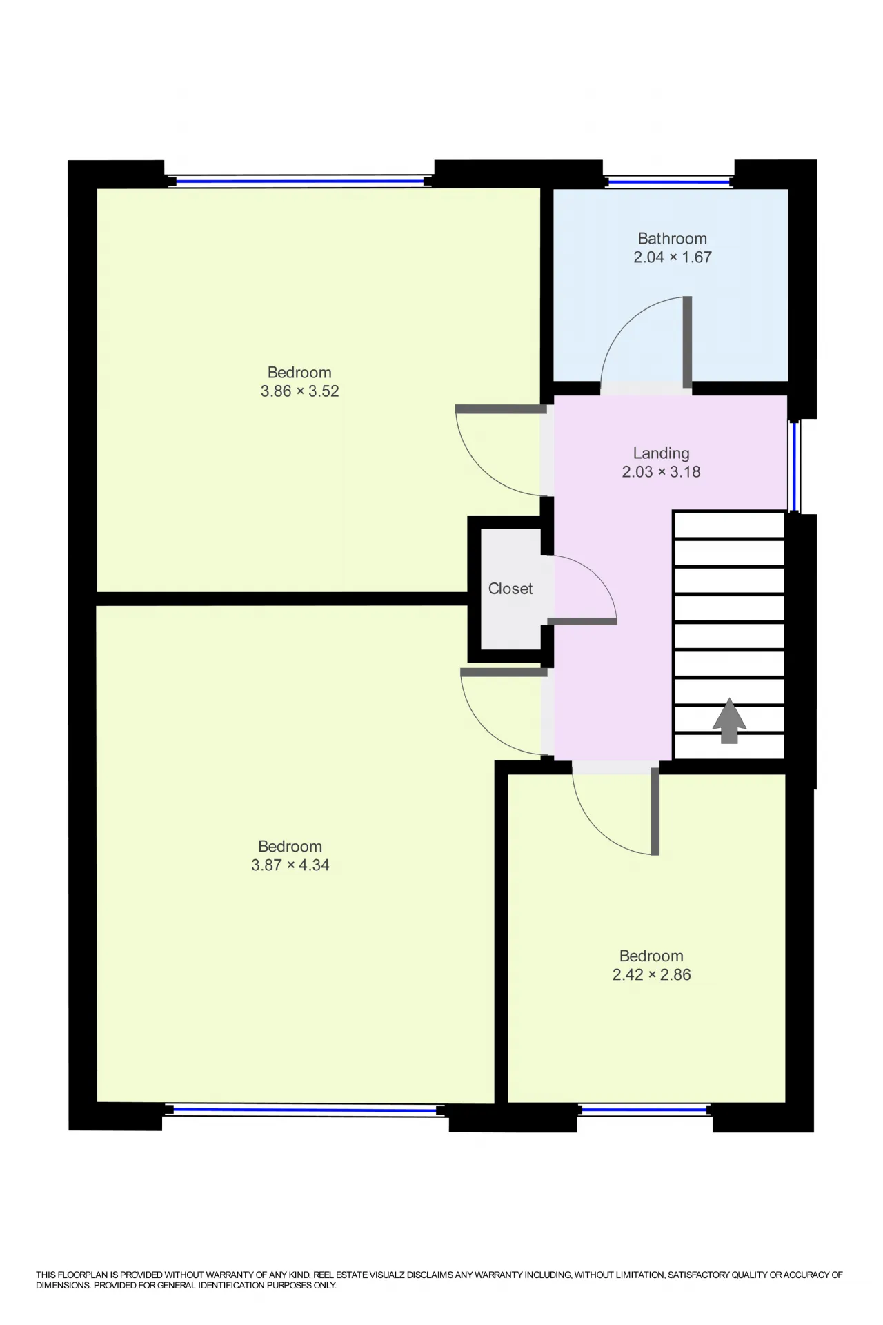 Landing 2.03m x 3.18m Carpeted flooring. Hotpress - Shelved. Window.