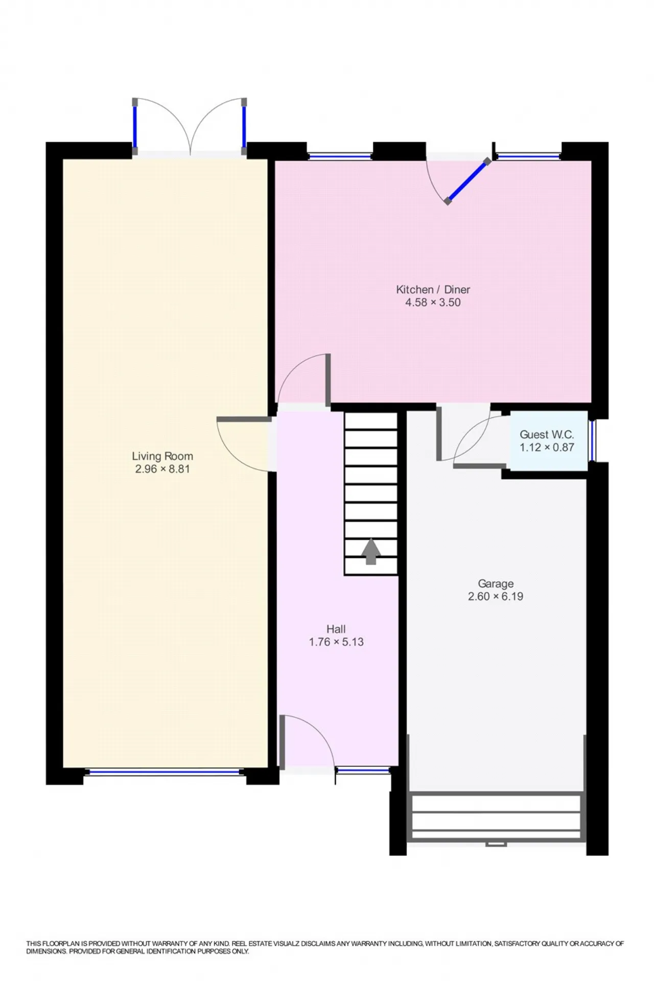 Garage 2.60m x 6.19m Electric roller door. Gas central heating boiler; plumbed for washing machine; electricity points.