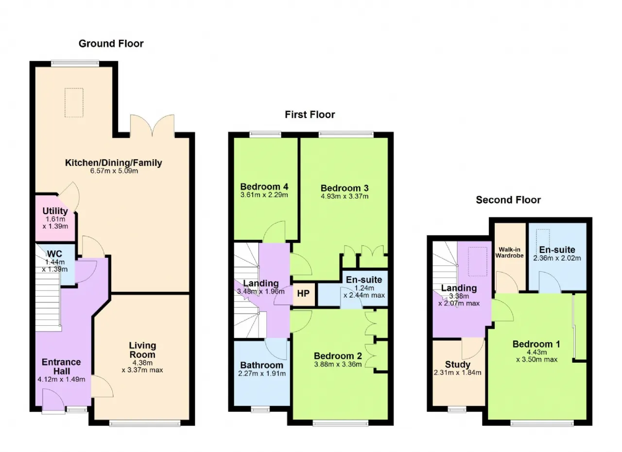 Spanning approx. 147 sq m / 1,582 sq ft over three floors, this fabulous property is beautifully proportioned with a perfect balance of spacious living areas and generous bedroom accommodation & is further enhanced with a B2 energy rating which contributes to lower energy bills. The layout is both practical and stylish, ideal for modern family living.