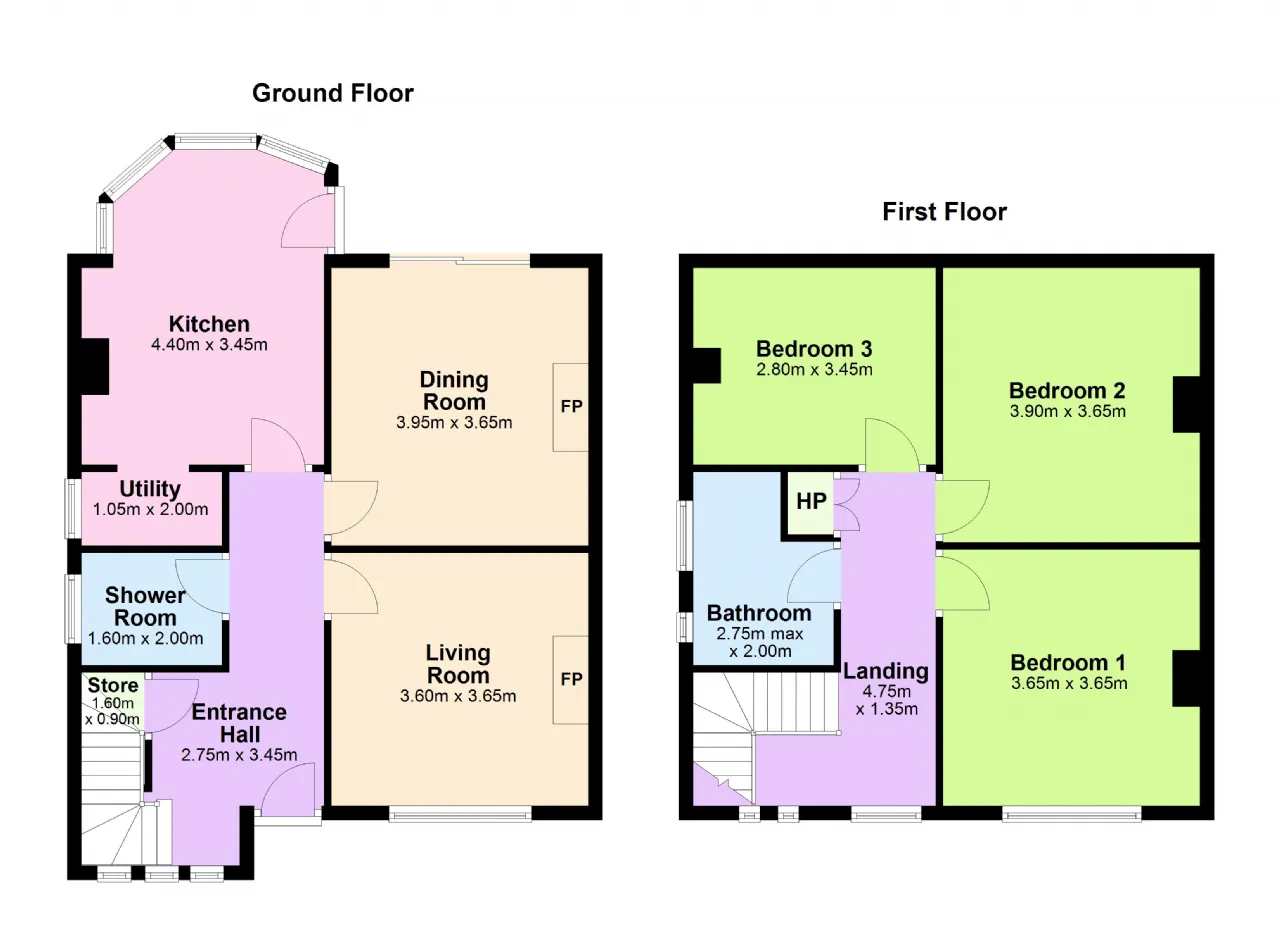Bedroom 1 3.65m x 3.65m With window overlooking the front.