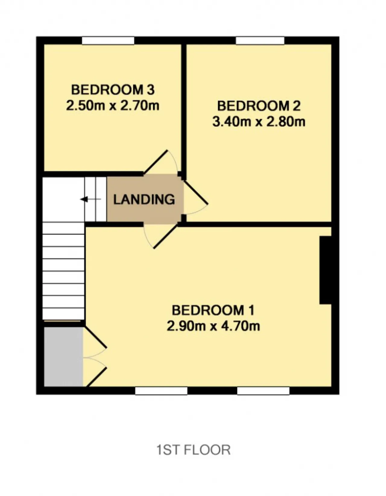 Bedroom 3 2.5m x 2.7m Double bedroom overlooking the garden with carpet floor.