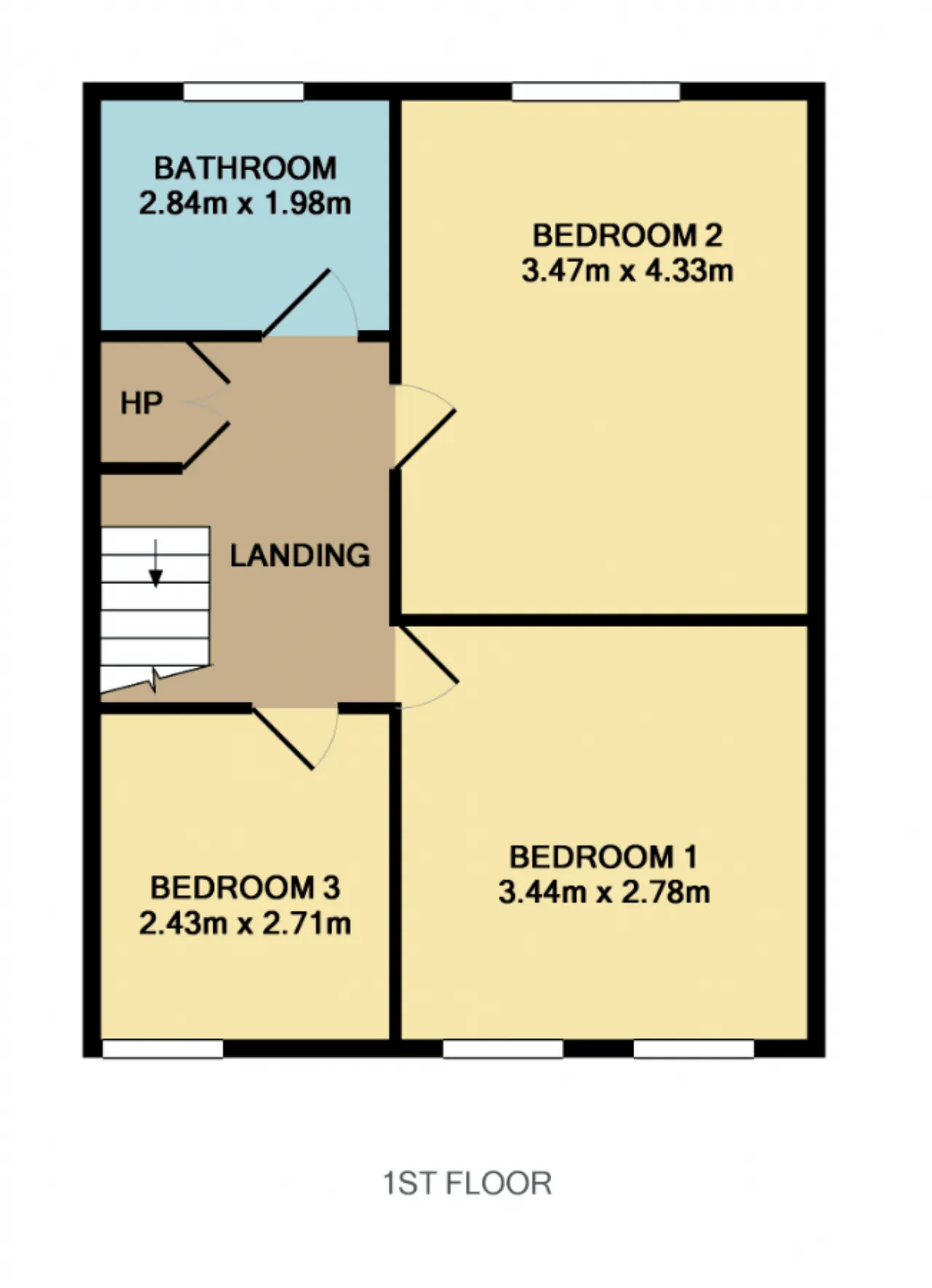 Bedroom 1 3.44m x 2.78m Large double bedroom with carpet flooring, window to front