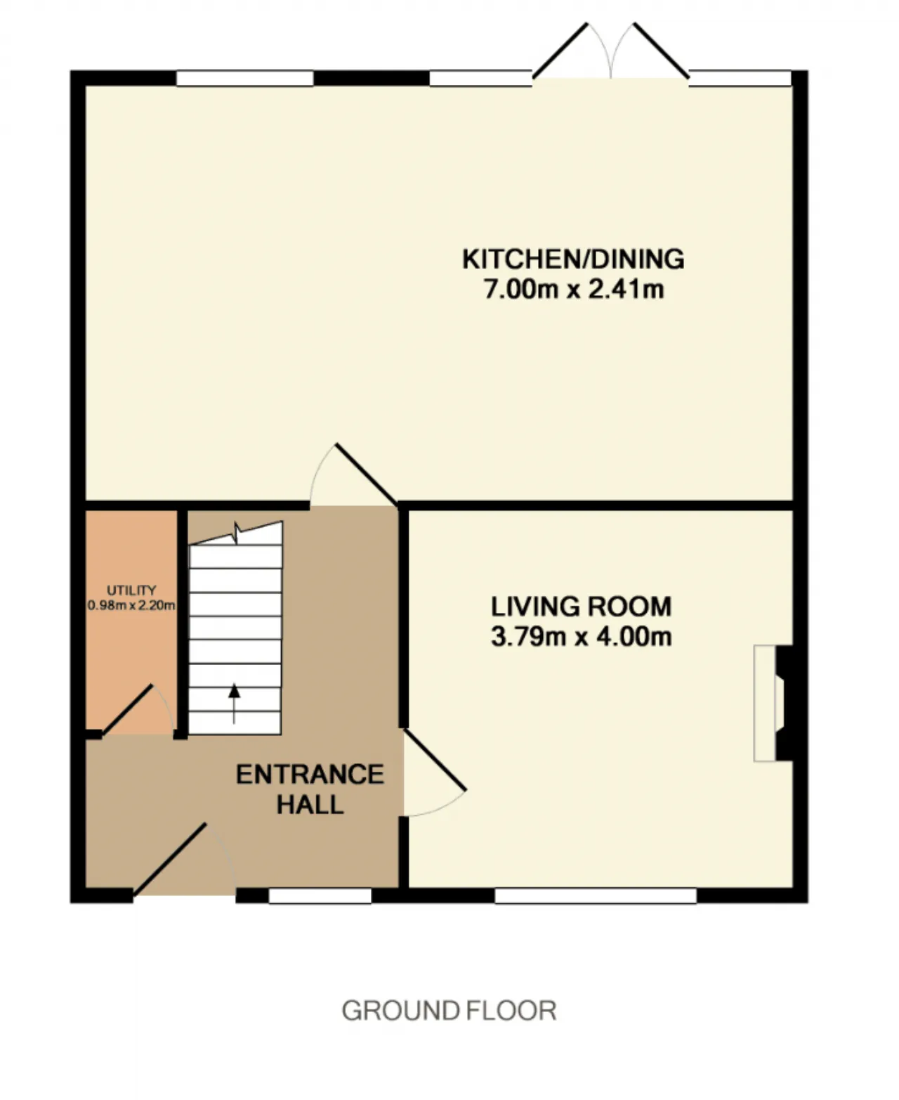Living Room 3.79m x 4.00m Large living space with solid wood flooring, feature xx fire with white wood effect surround, window to front