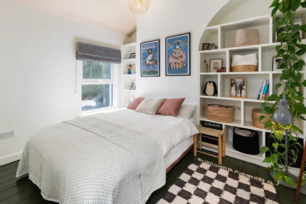 Bedroom 1 2.8m x 4m A spacious double bedroom located at the front of the house, overlooking Oxmantown Road. This is the larger bedroom, featuring beautiful wooden floorboards and built-in wardrobes.