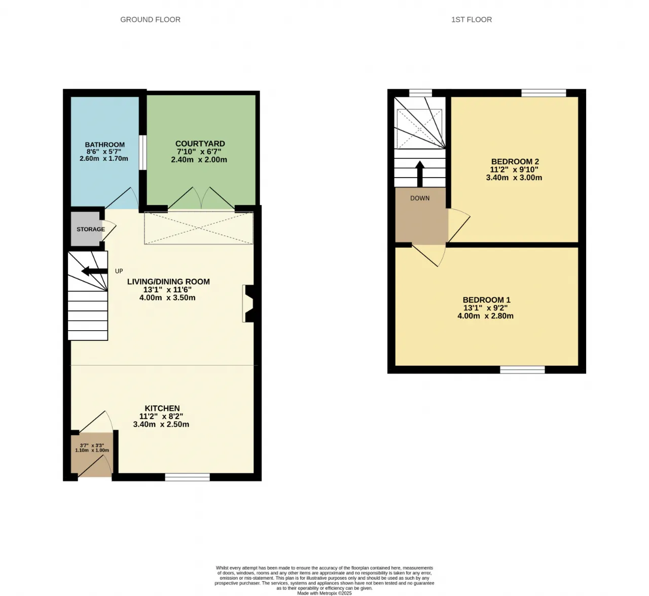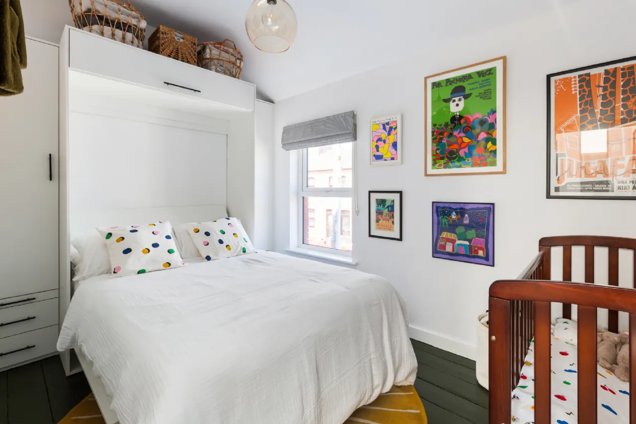 Bedroom 2 3.4m x 3m A good sized double bedroom located to the rear of the property, overlooking the courtyard. It features beautiful wooden floorboards, built-in alcove storage, and an additional fitted unit, offering both charm and practicality.