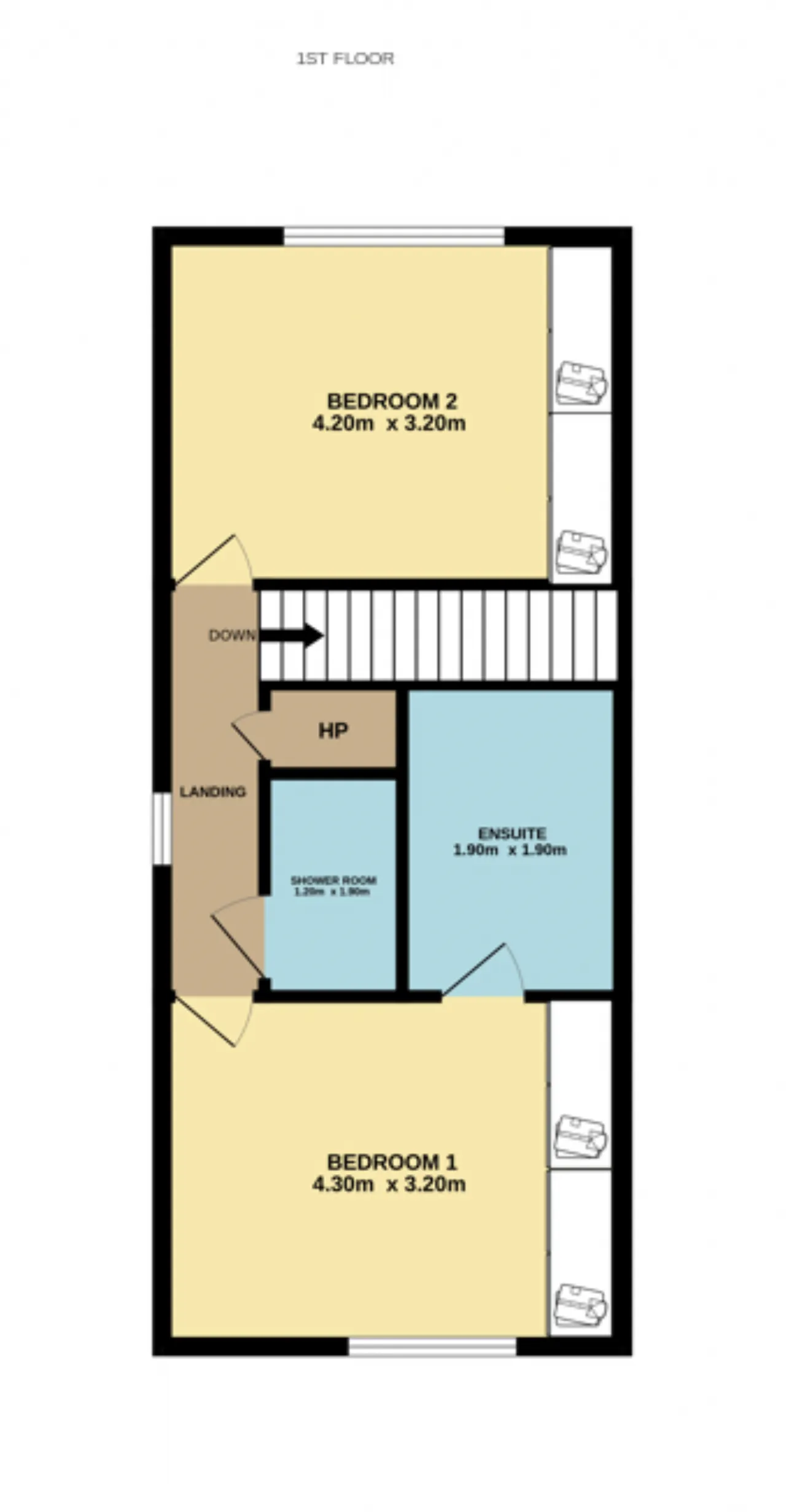 Landing 0.9m x 3.8m Hotpress, Coving, Window to side