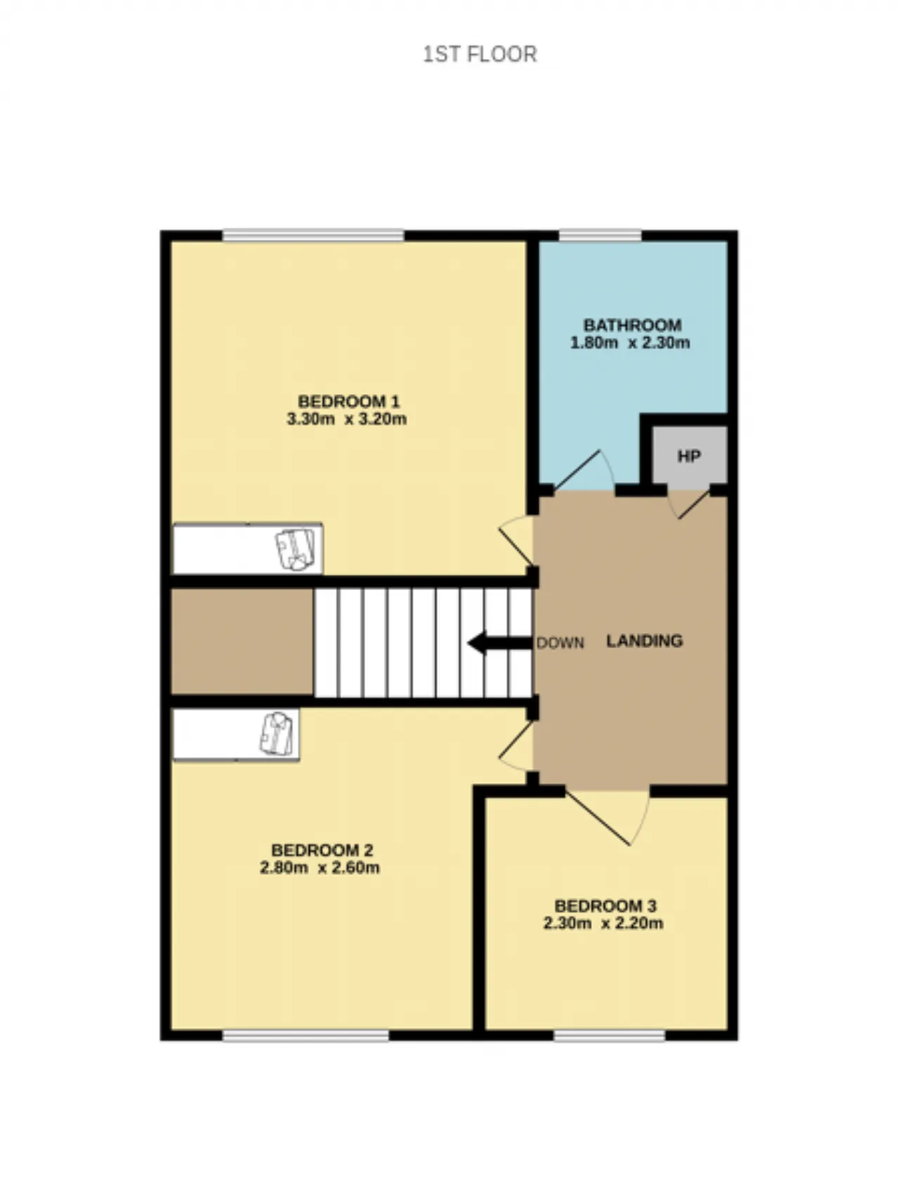 Bedroom 3 2.2m x 2.3m Single bedroom to the front with carpet flooring, and a front-facing window.