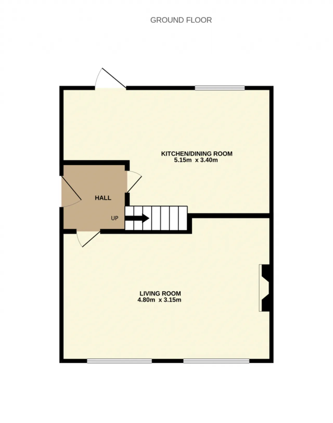 Kitchen Dining Room 3.4m x 5.15m Shaker-style fitted kitchen complete with oven, hob and extractor fan, as well as an integrated dishwasher and useful under-stair storage. Finished with tiled flooring and a glazed door opening to the rear garden.