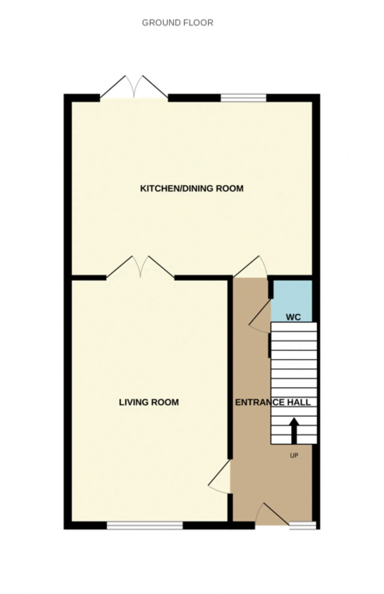 Guest Wc 0.9m x 0.8m Wc, wash hand basin, fully tiled floor.