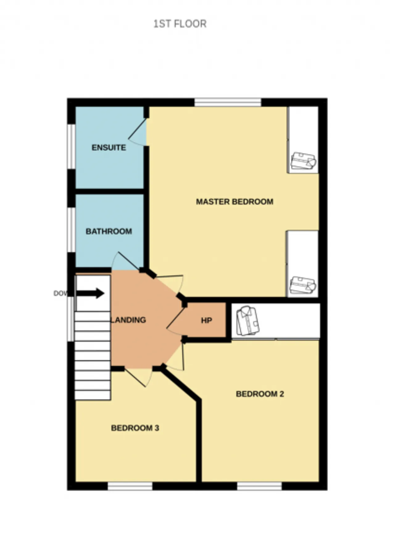Bedroom 3 2.5m x 2.2m Built-in wardrobe, laminate floor, window overlooking front.