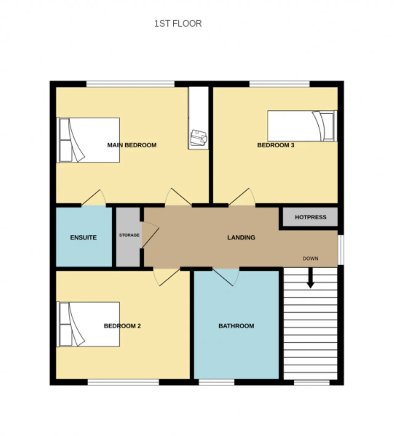 Landing 4.31m x 1.47m Carpet, storage closet, hot press and attic access with Stira