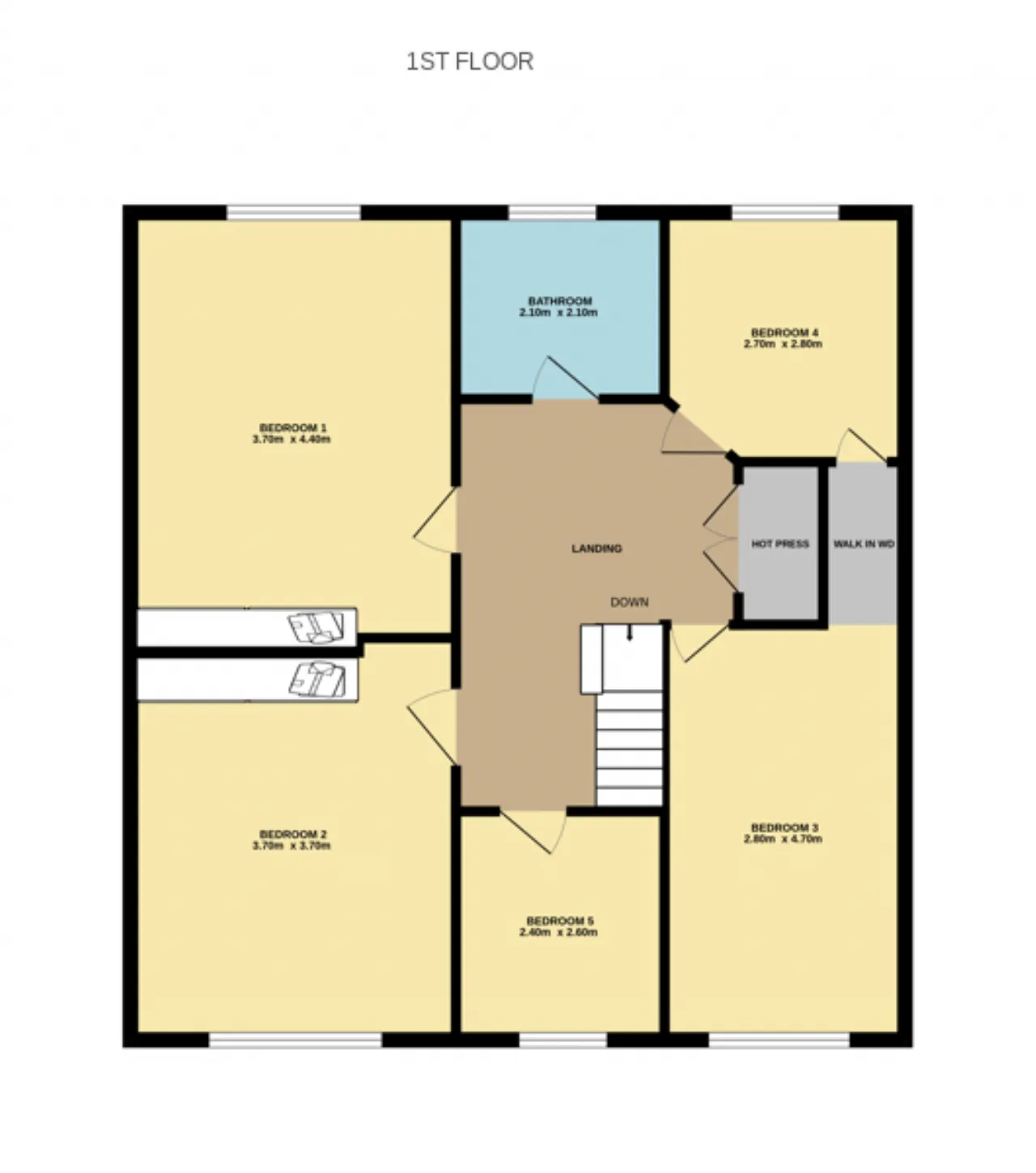 Bedroom 3 2.80m x 2.70m Single bedroom with solid oak flooring, fitted wardrobes and window to front.