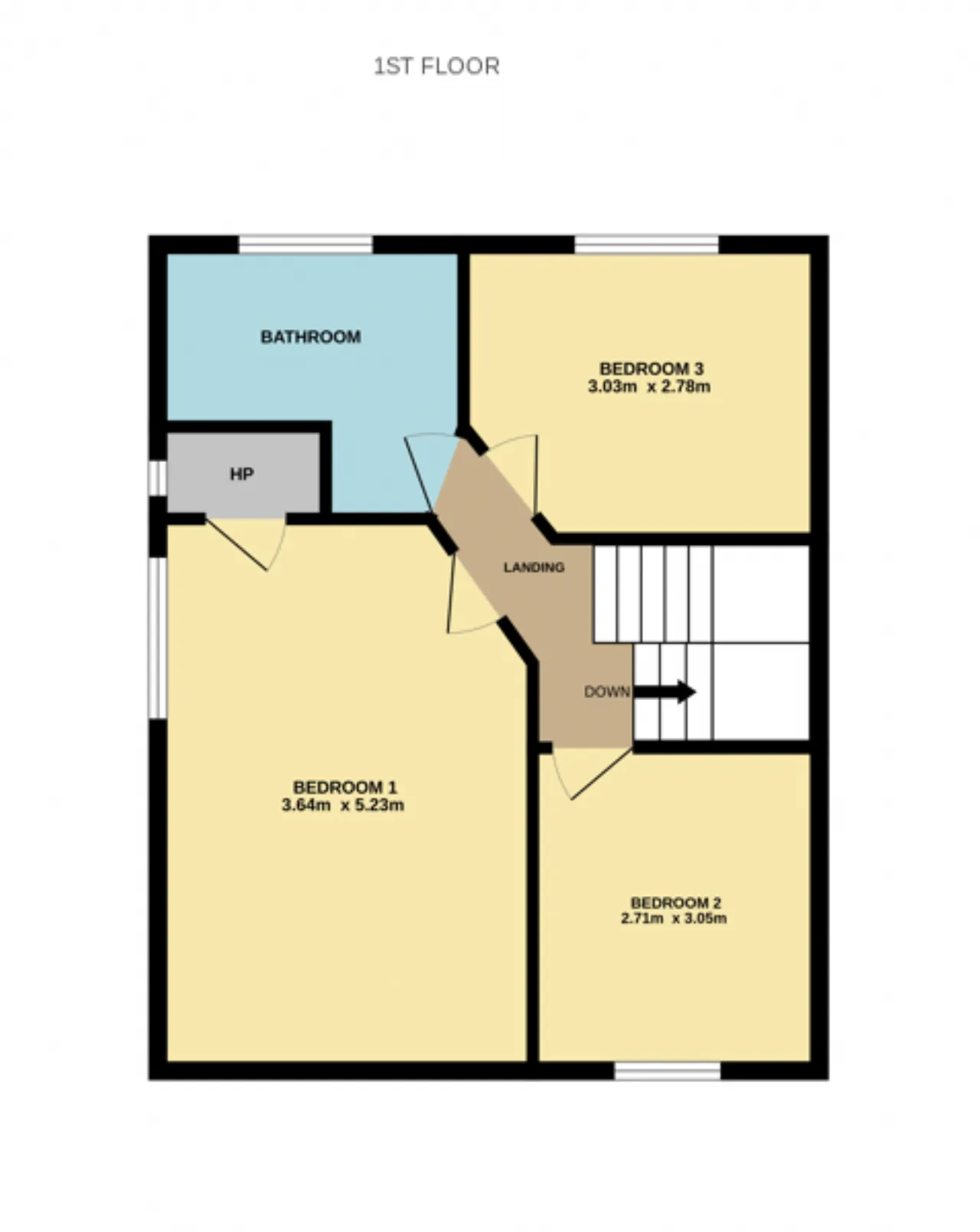 Bedroom 1 3.64m x 5.23m Large double room with carpet flooring.