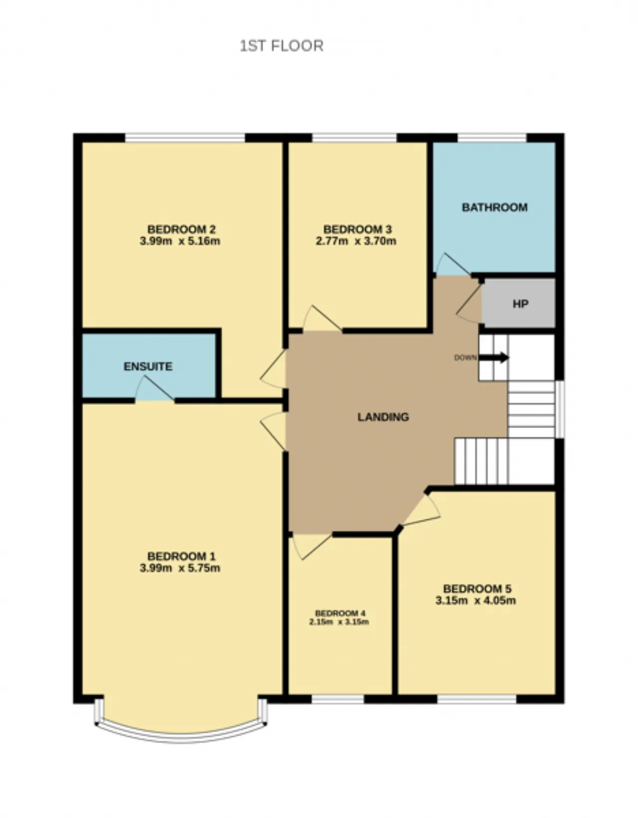 Bedroom 5 3.15m x 4.05m Double room to the front, carpet flooring, fitted wardrobes and wash hand basin.