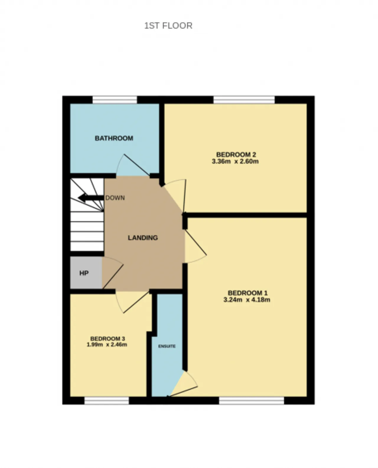 Bedroom 1 3.24m x 4.18m Double room to the front with carpet flooring, recessed lighting and fitted wardrobes.