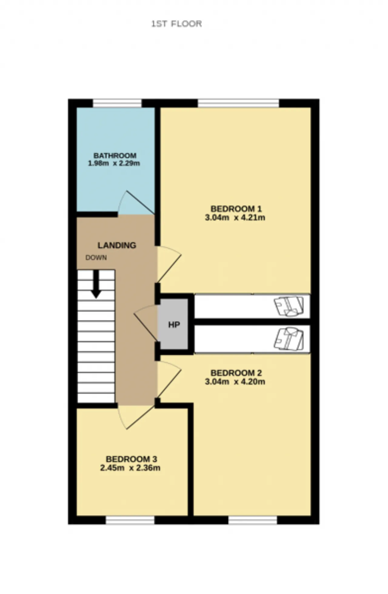 Bedroom 3 2.45m x 2.36m Single room looking over the front garden with wood flooring.