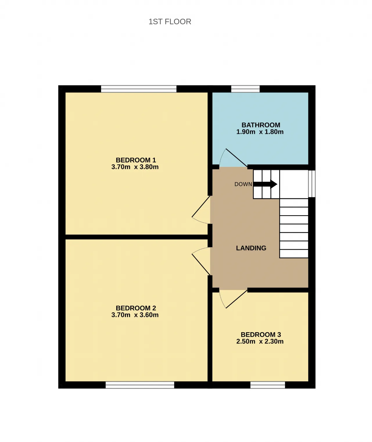 Bedroom 3 (Front) 2.3m x 2.5m Solid timber flooring.